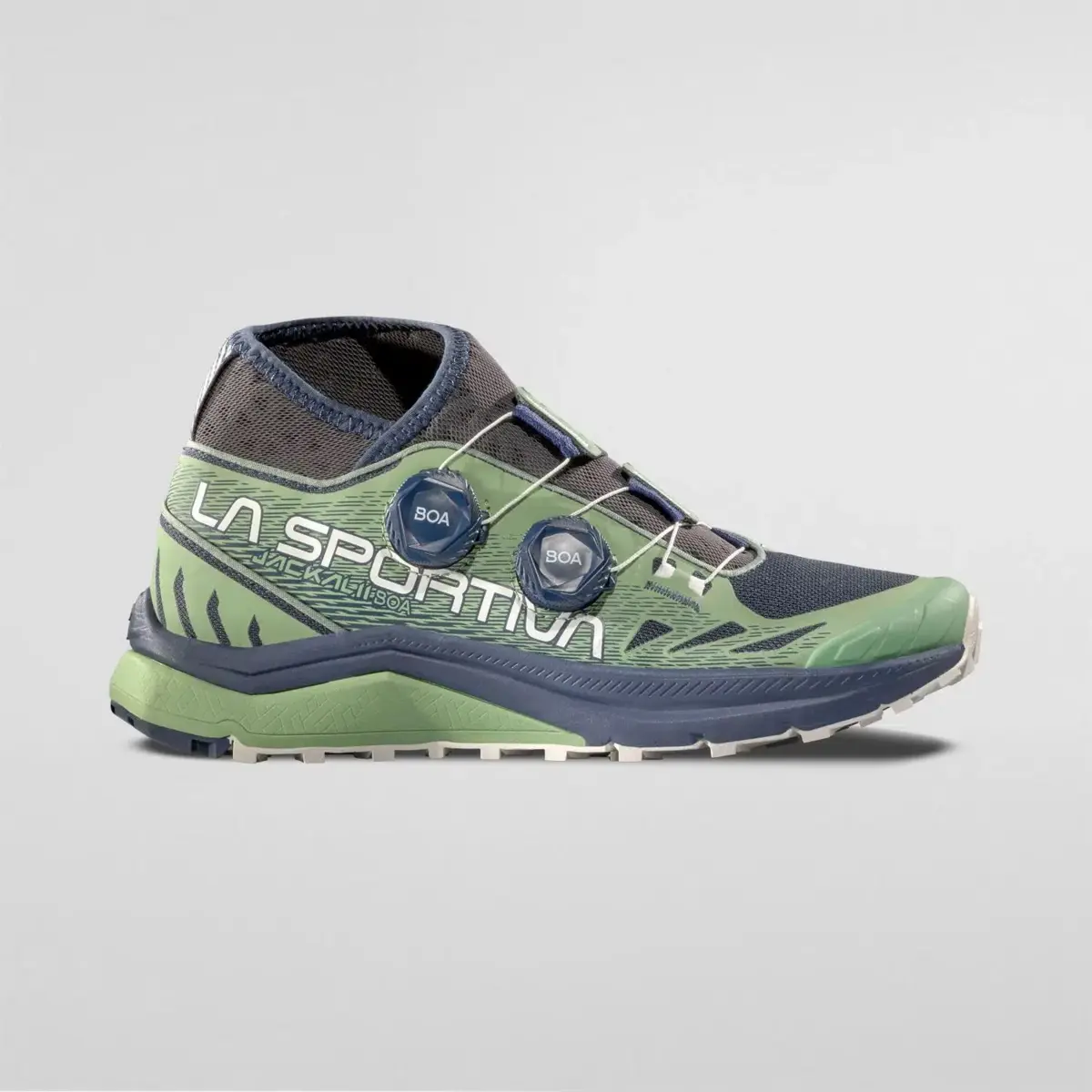 Der La Sportiva Jackal II BOA ist ein leistungsstarker Berglaufschuh für extrem lange Distanzen. Er verfügt über das wissenschaftlich getestete und bewährte PerformFit™ Wrap mit BOA® Fit System für eine schnelle, mühelose und präzise Passform. Zwei BOA®-Drehverschlüsse am schützenden Obermaterial sorgen in Kombination mit einer doppelten 3-Lagen-Mikrofaser-Verschlussklappe für eine perfekte zonale Anpassung am Fuß und maximalen Halt der Ferse. Dies erhöht die Stabilität und reduziert den Aufprall beim Landen in den technisch anspruchsvollsten Abschnitten eines Ultramarathons.