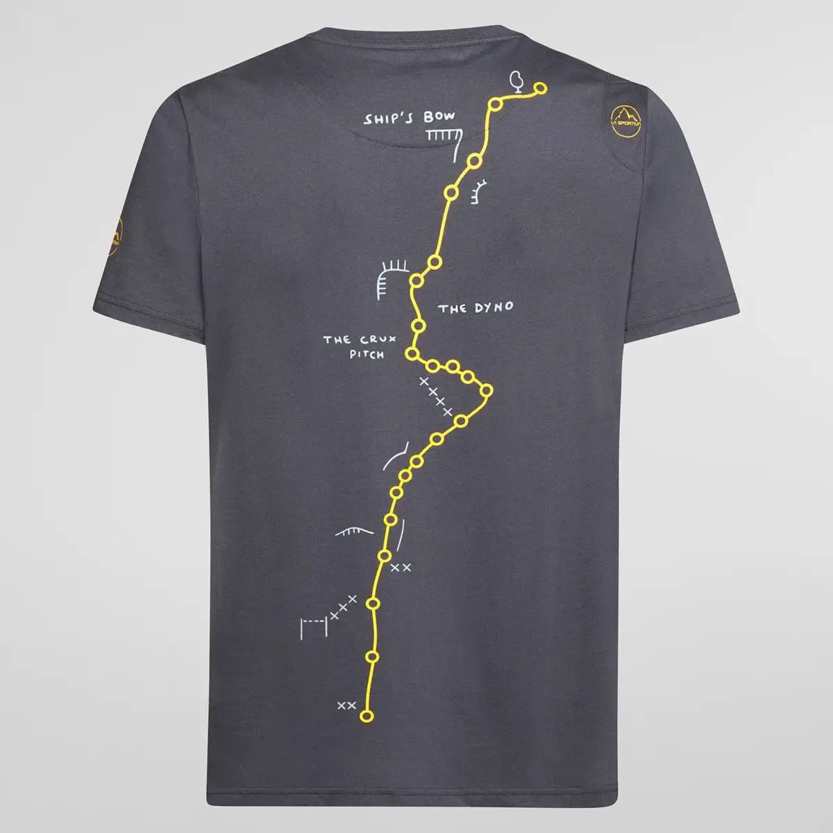 Erleben Sie die legendäre Klettertour mit unserem exklusiven T-Shirt, das die komplexe Dawn Wall-Route grafisch darstellt. Dieses T-Shirt ist eine Hommage an die Kletterer, die die anspruchsvollste Big-Wall-Klettertour der Welt bewältigt haben. Es wurde für alle entwickelt, die die Kunst des Kletterns zu schätzen wissen, und zeigt die einzelnen Seillängen der Route, sodass Sie den Weg der Legenden nachverfolgen können.