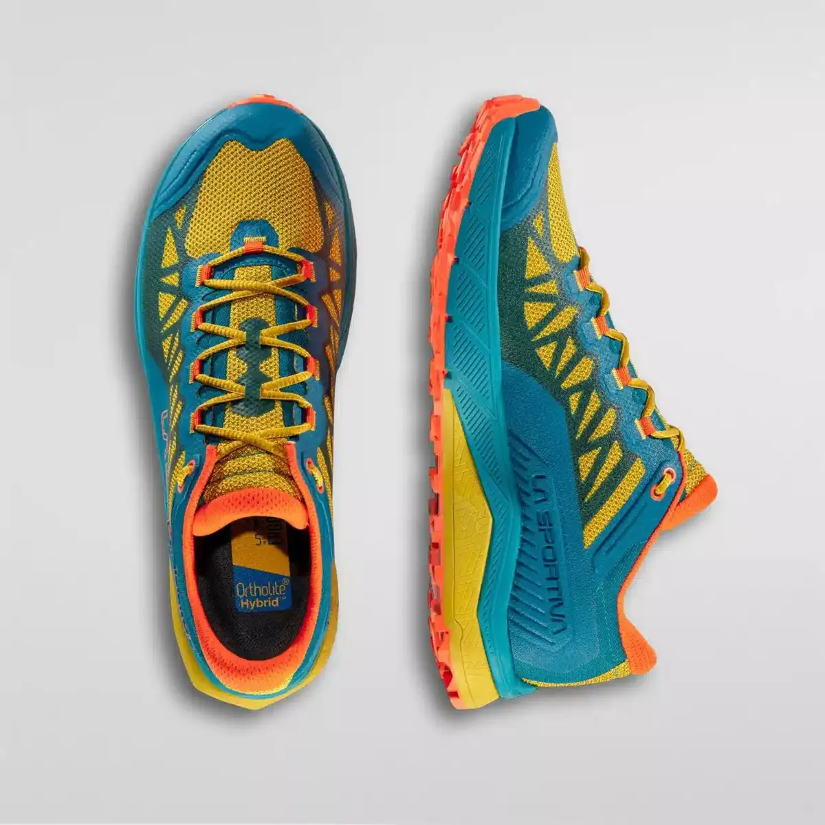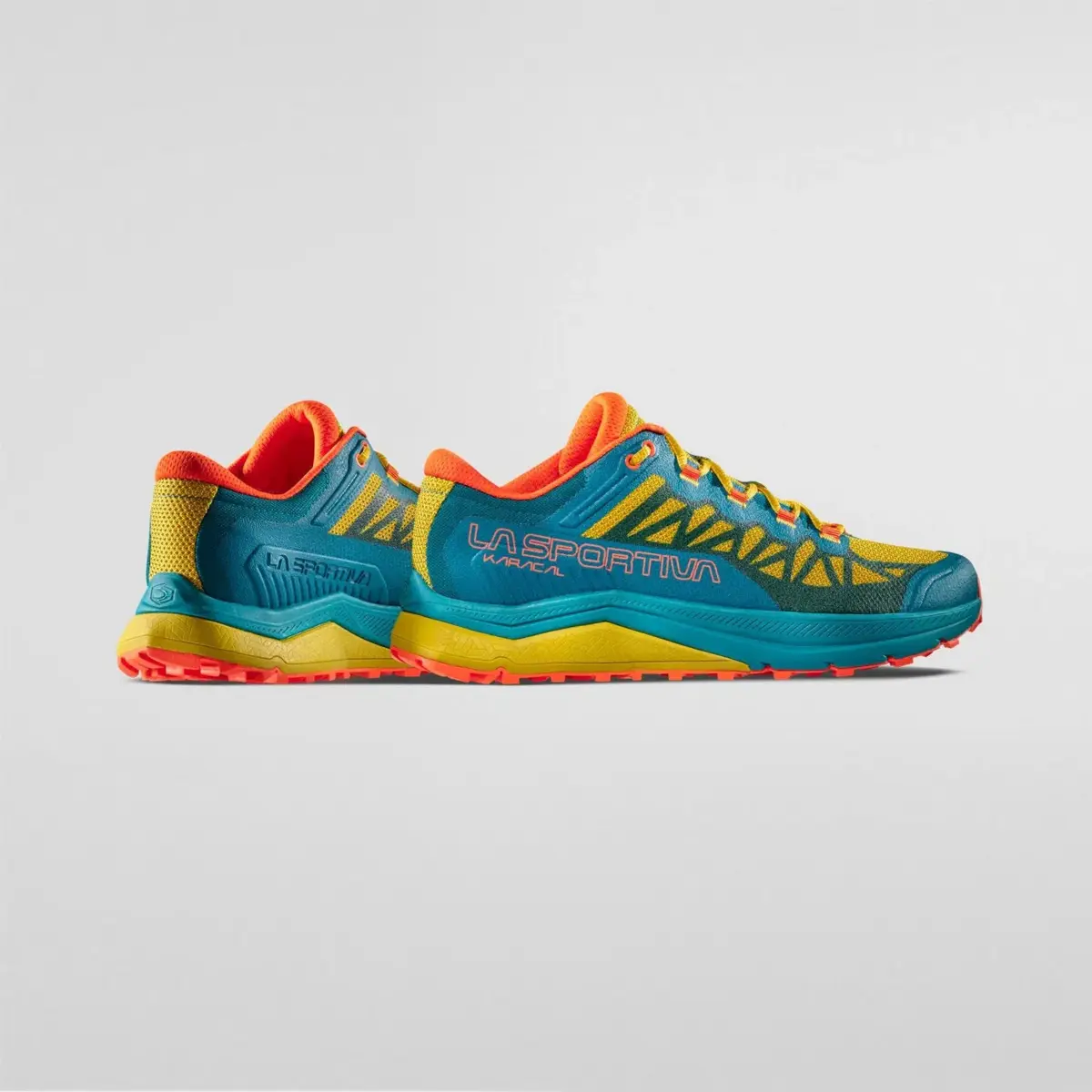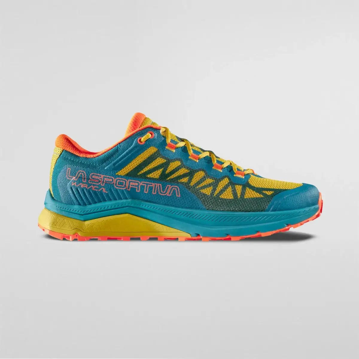 Karacal ist der Trainingsschuh für den Trailrunning-Einsatz. Karacal wurde für langes Offroad-Training auf mittleren und langen Distanzen entwickelt und eignet sich dank seiner außergewöhnlichen Passform und hohen Atmungsaktivität perfekt für die Erholung nach dem Lauf. Der kompakte, leistungsorientierte Kragen und die traditionell konstruierte Zunge garantieren maximalen Komfort. Das nahtlose 3D-Mesh-Obermaterial aus einer einzigen Schicht sorgt für Volumen und hohe Atmungsaktivität, während die Verstärkungen aus Mikrofaser im hinteren Bereich die Gesamtstabilität des Schuhs unterstützen. Extrem leicht und flexibel dank der Gewichtsreduzierung aller verwendeten Materialien und der leichten und strapazierfähigen EVA-Zwischensohle mit doppelter Dichte. Die thermogeformte Zehenkappe trägt zur Gesamtleichtigkeit bei und bietet hervorragenden Schutz vor Stößen gegen Steine und Wurzeln. Die Außensohle aus strapazierfähigem FriXion-Blau mit Impact Brake System-Stollen in unterschiedlichen Stärken verbessert die Traktion und Bremsleistung und optimiert das Gewicht. Karacal: Wenn Sie trainieren, sind Sie auf dem Trail unterwegs.